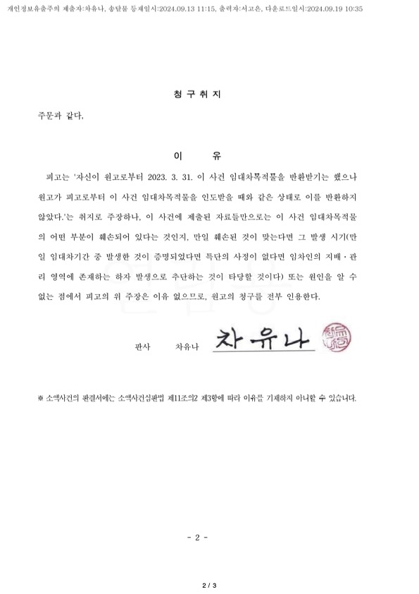 신진******* 임대차 보증금 판결문