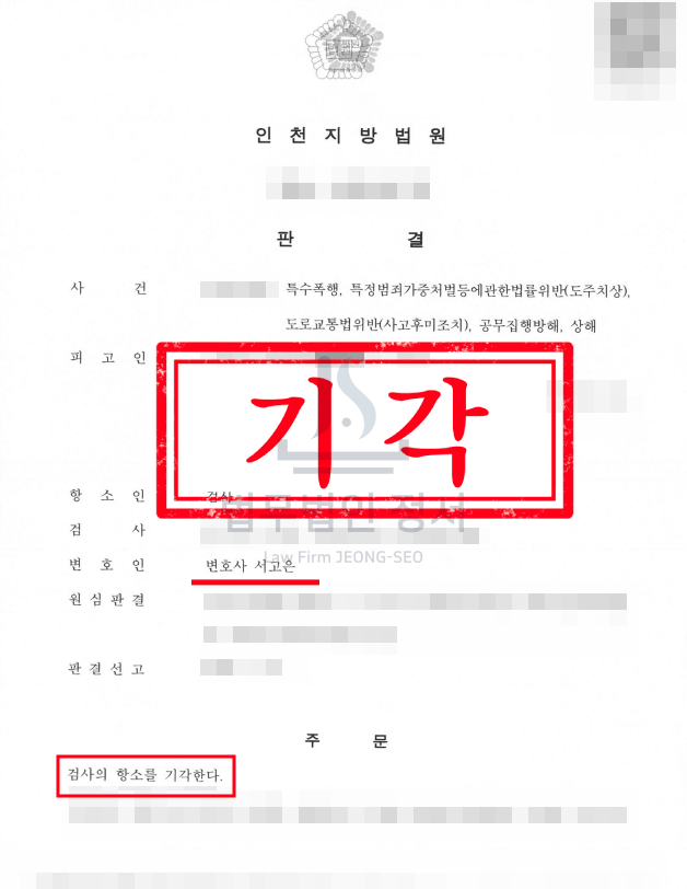 인천 음주운전 도주치상 무죄 판결사례